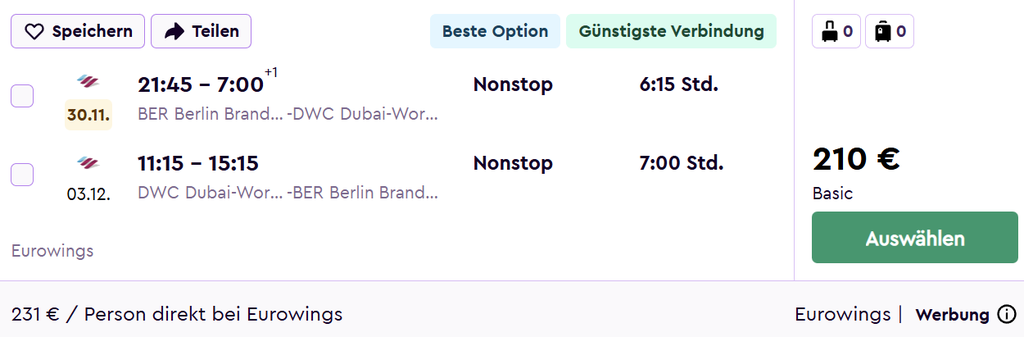 Bei Abflug in Berlin kommt man von November 2025 bis Januar 2026 zu extrem günstigen Preisen nach Dubai!