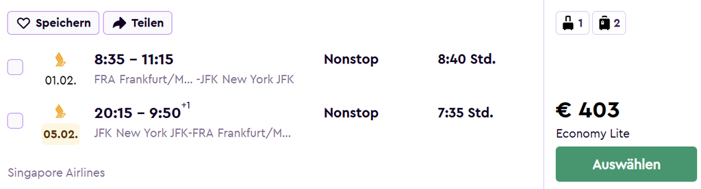 Singapore Air: Non-Stop Preiskracher von Frankfurt nach New York