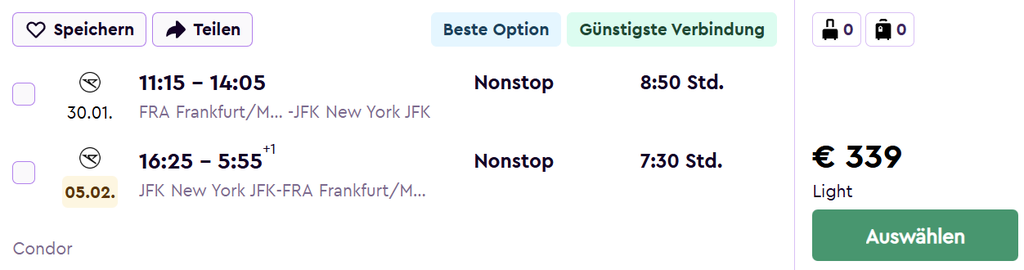 Bei Abflug in Frankfurt kommt man im Januar und im Februar 2026 zu sehr günstigen Preisen nach New York City!